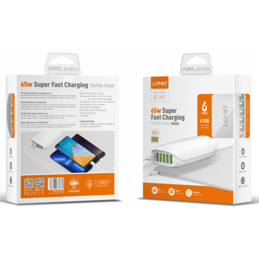 Cargador Pared 1PD65W+1QC3.0+4 Smart IC LDNIO A6573C