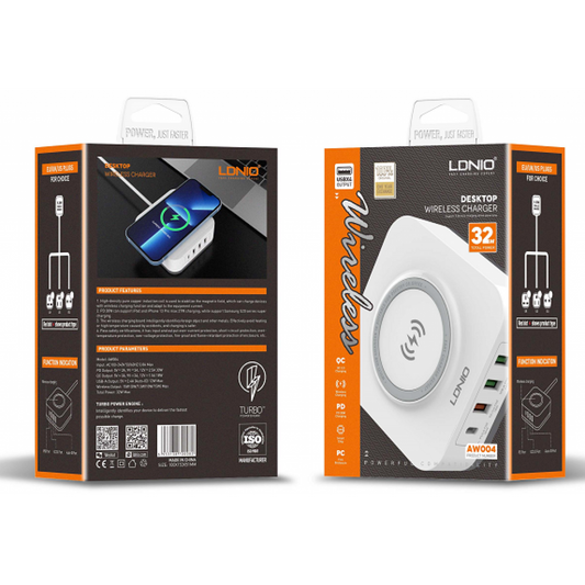 Cargador Inalámbrico de Escritorio 5 en 1 32W PD30W+ QC18W+2Auto-ID LDNIO AW003