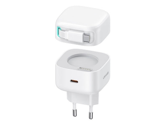 Cargador USAMS CC202 35W con Cable Retráctil Tipo C Magnético y Doble Puerto GaN