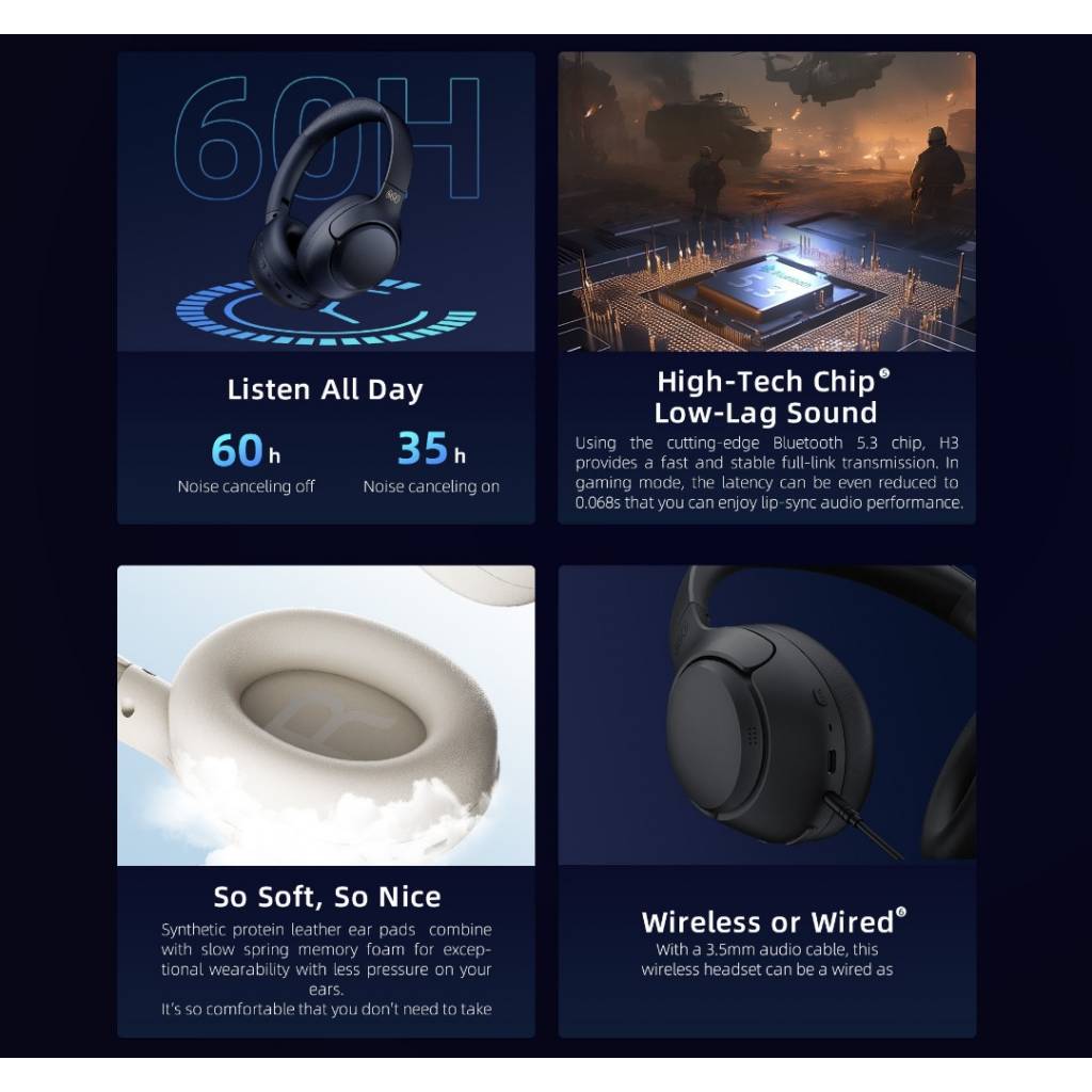 Los auriculares Bluetooth H3 de QCY by Xiaomi combinan tecnología avanzada de cancelación de ruido con una calidad de audio superior y adaptabilidad inteligente para una experiencia auditiva inigualable.