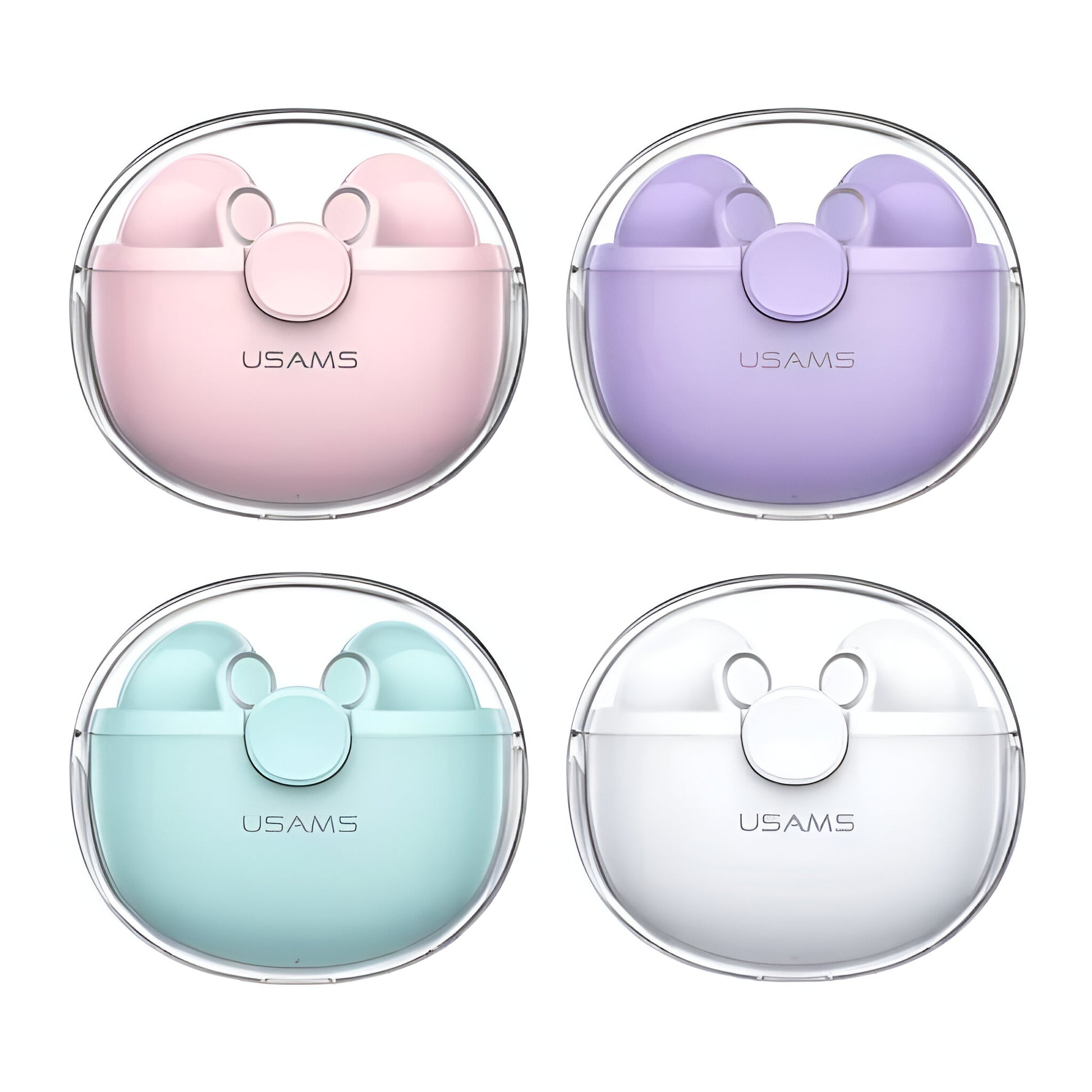 Los auriculares BU12 BU Series TWS de USAMS combinan tecnología Bluetooth 5.1 con un diseño vibrante en colores rosado, violeta y verde, ofreciendo un sonido superior y comodidad para todo el día.