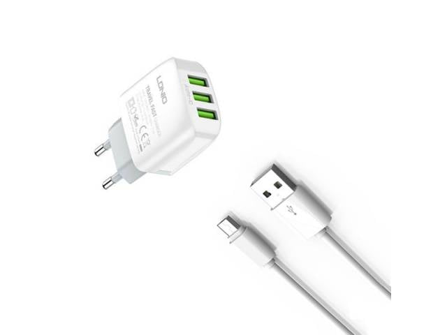 Simplifica tu vida y carga todos tus dispositivos desde un solo enchufe. El Cargador de Pared LDNIO A3312 con 3 Puertos USB y cable Micro USB incluido es la solución práctica y eficiente que necesitas. ¡Ideal para tu hogar o para llevarlo contigo! 🏠💼🔋