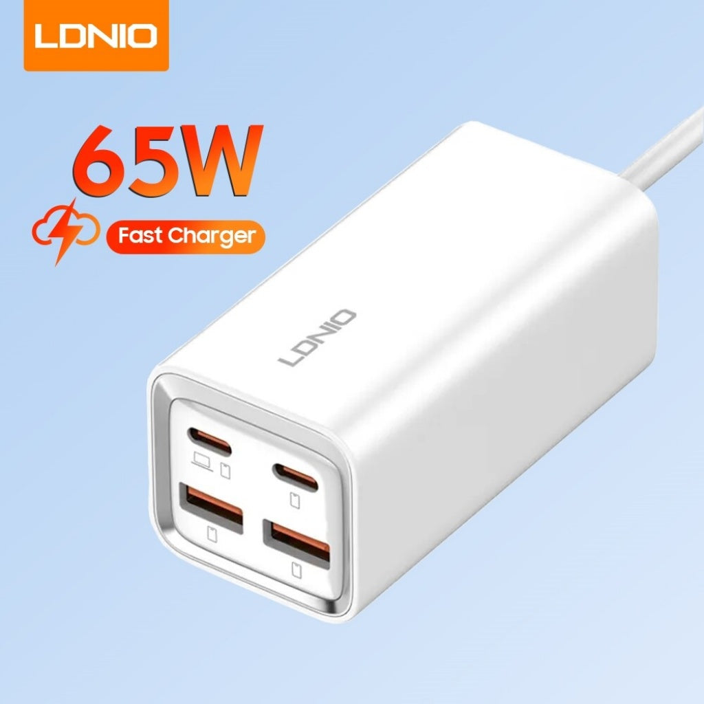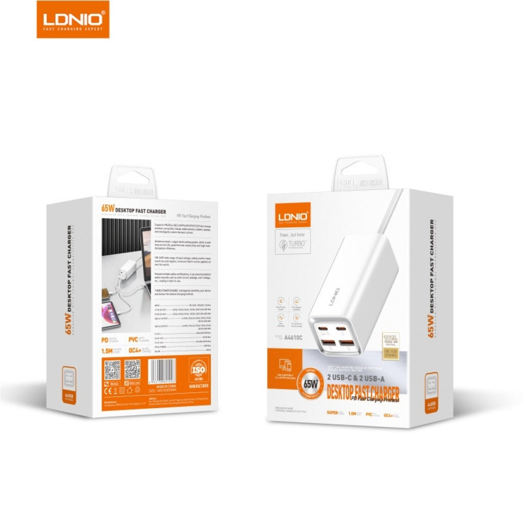 Organiza y potencia tu espacio de trabajo o tu hogar con la Estación de Carga de Escritorio LDNIO A4610C Blanco. Este cargador de alta tecnología de 65W cuenta con 4 puertos USB (2 x USB-C PD y 2 x USB-A) que soportan una amplia gama de protocolos de carga rápida, incluyendo PD, QC4+, QC3.0, PPS, AFC, FCP y SCP. Carga tu laptop, tablet, smartphone y más simultáneamente de forma eficiente y segura, gracias a su material ignífugo de alta calidad y múltiples protecciones integradas. Un único cargador para todas tus necesidades.