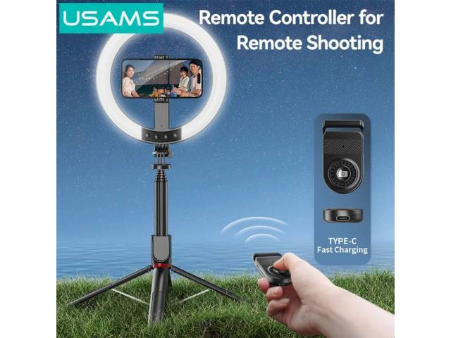 Palo Selfie con Trípode y Aro de Luz de 10 " Inalámbrico Altura Máx. 2.3M Negro ZB323 USAMS