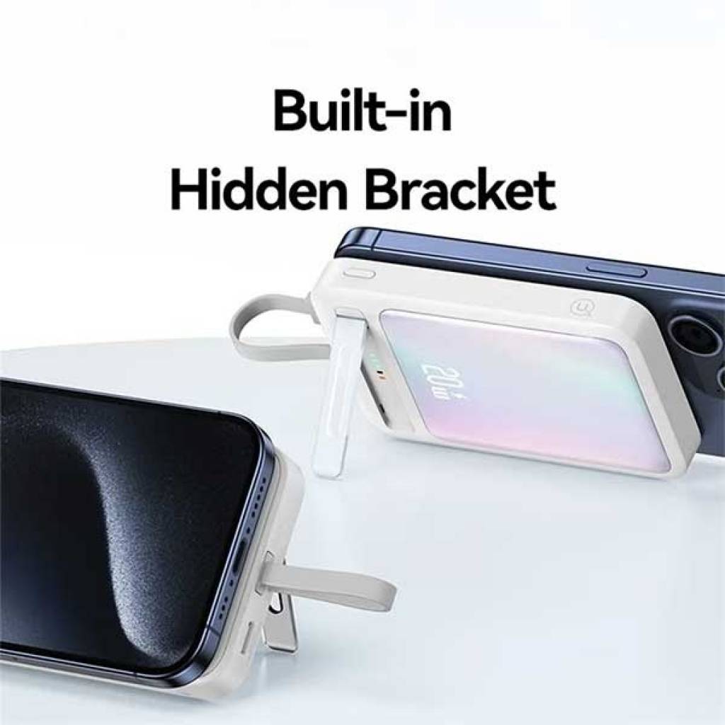 Recarga tus dispositivos de manera eficiente con el Power Bank Magnético de 10.000mAh, con soporte integrado y cable Tipo C. Potencia y conveniencia en un diseño compacto.
